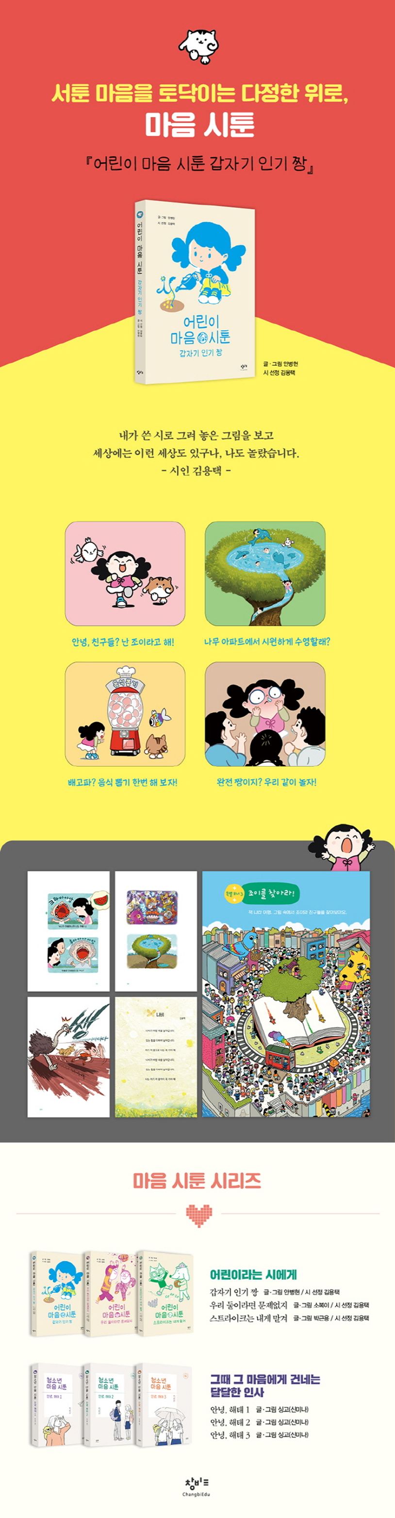 『어린이 마음 시툰 : 갑자기 인기 짱』은 김용택 시인이 교과서 수록 시를 비롯하여 어린이들이 읽으면 좋을 시를 선정하고 안병현 작가가 시와 관련한 어린이들의 경험과 생각을 녹인 웹툰을 그려, 시와 웹툰을 함께 담은 책이다. 한국만화영상진흥원에서 지원하는 ‘2019 다양성만화 제작 지원 사업’ 선정작으로, 작품성을 먼저 인정받았다.
