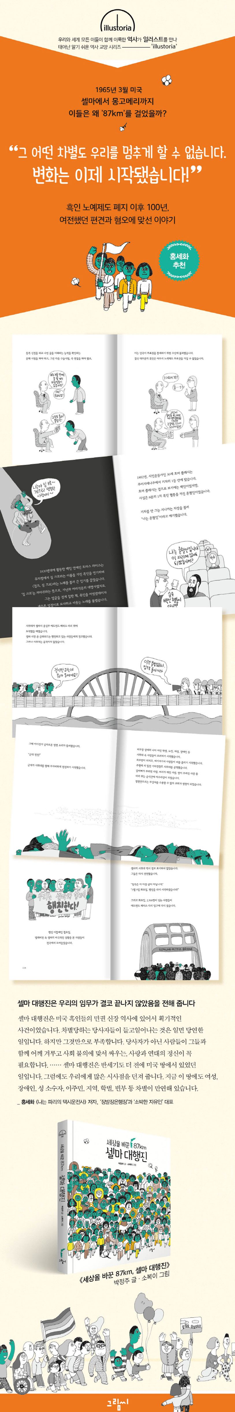 이 책에는 셀마 대행진이 일어나기까지의 이야기를 소복이 작가의 아기자기하고 피부에 와닿는 일러스트와 함께 모든 독자들이 쉽게 부담없이 읽을 수 있도록 담았다.