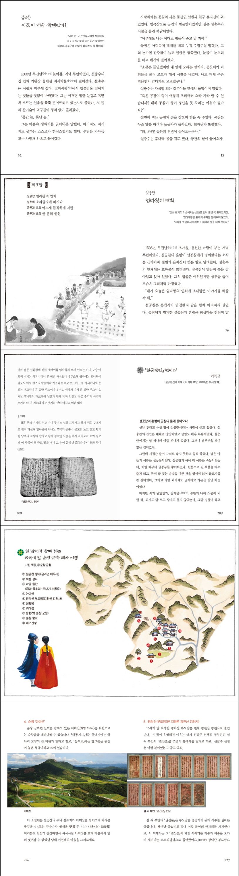『조선왕조실록』 1511년 어전회의 내용을 보면, 『설공찬전』이 사람들에게 해로운 책이라 그 책을 지은 채수에게 벌을 주고 책은 모두 불태워야 된다는 이야기가 나옵니다. 사람들을 미혹시키는 저승 이야기, 윤회 이야기 등이 문제가 되었습니다. 금서로 알려졌지만, 그 당시 『설공찬전』은 한문 필사본뿐만 아니라 한글로도 필사되어 일반 대중에게 널리 읽혔습니다. 다만 현재는 그 완본이 전해지지 않은 까닭에 국문학적인 의의는 크지만, 작품의 매력은 알려지지 못했습니다. 김재석 작가님은 한글 필사본이 발견된 부분은 원본에 충실하여 이야기를 적었고, 발견되지 않은 부분의 이야기는 자료 조사를 통해 풍부하게 구성하였습니다. 설공찬이 저승에 간 이야기로 알려져 있지만 설공찬의 누나를 통해 그 시대 여성들의 삶을 그렸고, 무오사화 등 정치적인 이야기도 나옵니다. 그리고 작품의 배경지인 순창의 민속을 풍부하고 정감 있게 보여 주고 있습니다.