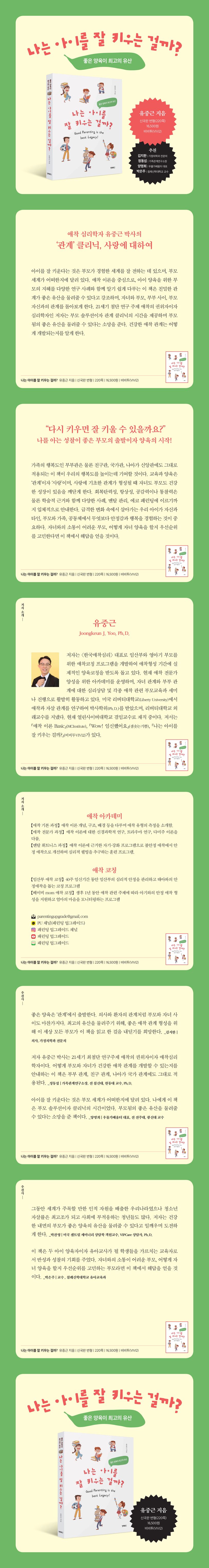 ★ 가족의 행복도인 부부관은 물론 친구관, 국가관, 나아가 신앙관에도 그대로 적용되는 이 책이 우리의 행복도를 높이는데 기여할 것이다. 교육과 양육은 ‘관계’이자 ‘사랑’이며, 사랑에 기초한 관계가 형성될 때 자녀도 부모도 건강한 성장이 있음을 깨닫게 한다. 회복탄력성, 항상성, 공감력이나 통찰력은 물론 학술적 근거와 함께 다양한 사례, 멘탈 관리, 에코 패런팅에 이르기까지 입체적으로 안내한다. 급격한 변화 속에서 살아가는 우리 아이가 자신과 타인, 부모와 가족, 공동체에서 무엇보다 안정감과 행복을 경험하는 것이 중요하다. 자녀와의 소통이 어려운 부모, 어떻게 자녀 양육을 할지 우선순위를 고민한다면 이 책에서 해답을 얻을 것이다.