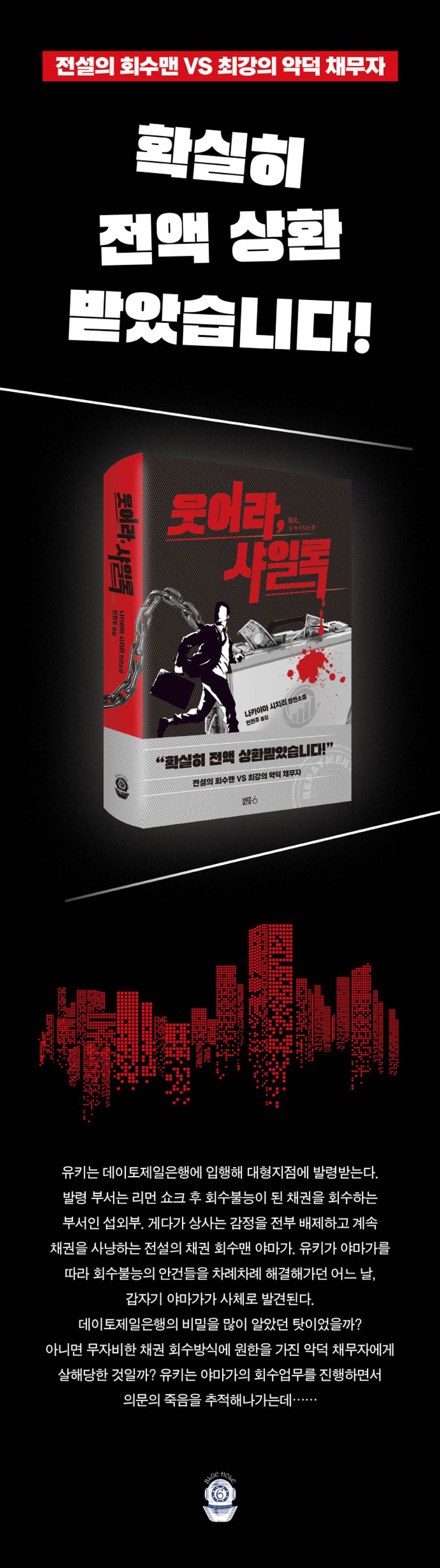 2009년 제8회 ‘이 미스터리가 대단해!’ 대상 수상작 『안녕, 드뷔시』의 작가 나카야마 시치리의 『웃어라, 샤일록』이 블루홀식스에서 출간되었다. 나카야마 시치리가 처음으로 선보이는 역대급 금융 미스터리로 색다른 재미를 자아낸다.