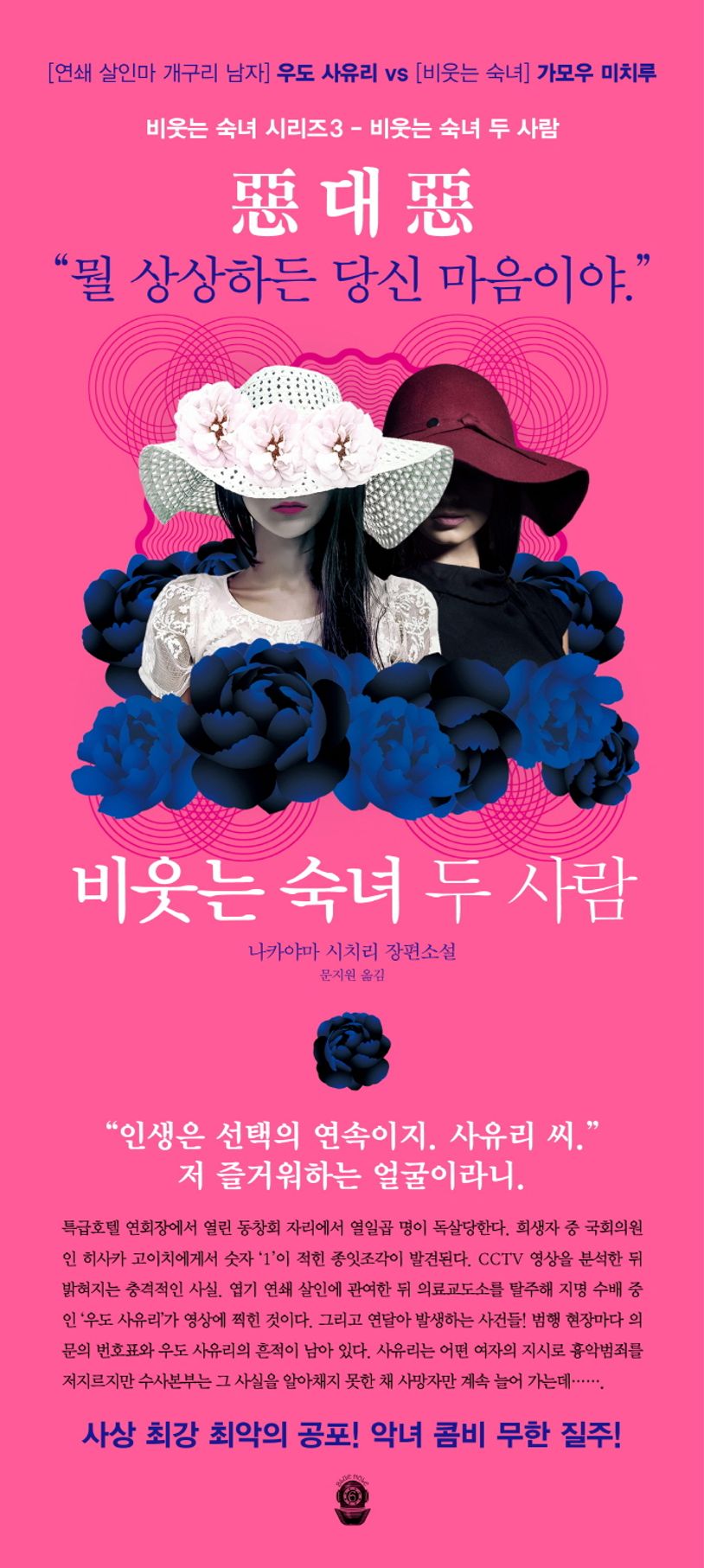 블루홀식스는 지금까지 국내 최초로 소개하는 작가의 작품들이 유독 많은 편이다. 대표적으로 ‘나가우라 교’, ‘미키 아키코’, ‘아사쿠라 아키나리’, ‘오승호’(고 가쓰히로), ‘저우둥’, ‘후루타 덴’(작가명 가나다 순)등의 다양한 작가의 작품들을 마치 미스터리 출판사의 사명(使命)처럼 출간하여 왔다. 또한 국내에서 아직 인지도가 높지 않았던 ‘우사미 마코토’, ‘하야사카 야부사카’, ‘레이미’를 발굴하였으며 특히 ‘나카야마 시치리’의 작품들을 시리즈 위주로 꾸준히 소개하여 대표 인기작가가 되었다. 이 또한 블루홀식스 출판사만의 기쁨이자 지향점이라고 할 수 있다. 이번에는 블루홀식스의 대표 인기작가 나카야마 시치리의 『비웃는 숙녀』가 출간되었다. 시치리가 야심차게 선보인 ‘이야미스’인 『비웃는 숙녀』, 『다시 비웃는 숙녀』에 이어지는 ‘비웃는 숙녀’ 시리즈의 세 번째 작품이다. 심상치 않은 두 사람이 콤비로 움직이는 만큼 연달아 터지는 사건들도 가지각색이다. 사건의 진상은 무엇인가? 전율의 다크 히로인 미스터리 총출동!