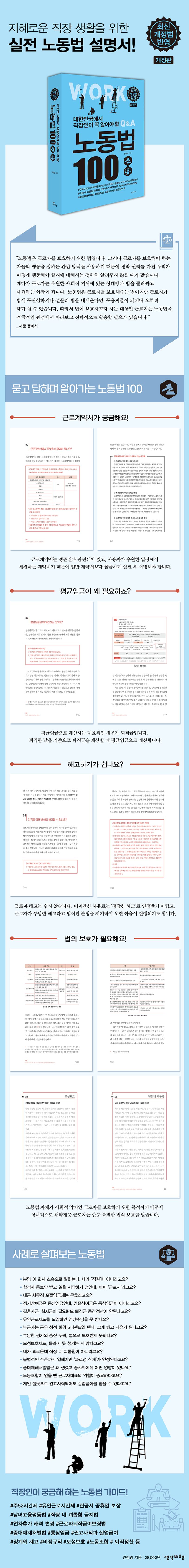 많은 직장인이 노동 분쟁 없이 회사에 다니기를 바라지만 현실은 그렇게 녹록하지 않다. 법적 분쟁이 아니더라도 직장 생활을 하면서 회사와 크고 작은 마찰은 있기 마련이다. 휴가, 휴직, 출퇴근 시간, 수당 등으로 회사나 상사의 눈치를 볼 때도 있고, 잘못 없이 억울한 상황에 내몰리기도 하며, 원하지 않는 징계나 퇴사를 강요받기도 한다. 때로는 노동법을 몰라서 넘어가기도 하고, 때로는 알지만 참기도 한다. 어떤 이는 회사를 다니는 동안 자신이 노동 관련 사고에 말려들 일이 없다고 생각해 노동법에 무관심하기도 하고, 어떤 이는 자신에게 닥친 노동 관련 문제를 인터넷이나 주변에 떠도는 이야기만 믿고 섣불리 법을 내세우기도 한다. 이때 노동법은 자신을 보호하기는커녕 오히려 해가 되기도 한다. 노동법은 근로자를 보호하는 법이지만 근로자가 권리를 어떻게 사용해야 하는지 직접 알려주지 않는다. 따라서 직장인에게 쉬운 노동법 사용 설명서가 필요하다. 특히 ‘주52시간제’, ‘유연근로시간제’, ‘관공서 공휴일 보장’, ‘남녀고용평등법’, ‘직장 내 괴롭힘 금지법’, ‘연차휴가 해석 변경’, ‘근로자퇴직급여보장법’, ‘중대재해처벌법’, ‘통상임금’, ‘권고사직과 실업급여’ 등 직장인에게 민감한 조항이 어떻게 생기고 바뀌었는지 알려주는 《노동법 100》과 같은 직장 생활 가이드가 절실하다.