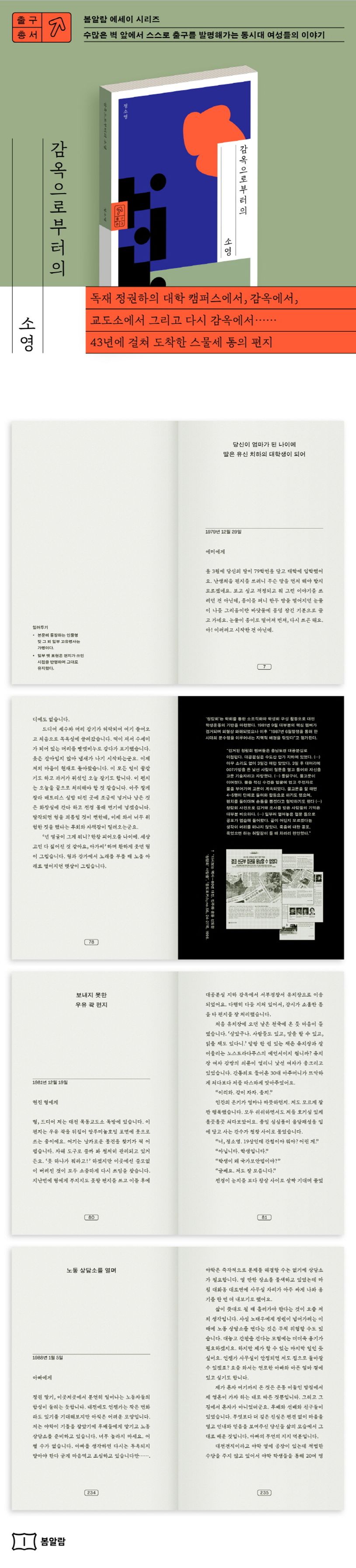 “너는 여자라서 안 돼.” 양모의 말로 서울 대학에 가려는 꿈은 좌절되었지만 부친의 뜻에 따라 가까운 국립대에 진학했다. 독재 정권의 통제하에 놓인 강의실 대신 공부 모임과 조직을 통해 진짜 역사의 진실을 배워나갔고, 그로 인해 옥살이와 고문을 겪었다. 군사정권의 폭력과 시대의 아픔으로, 운동권 내부의 분열과 성범죄로, 사랑의 죽음과 배반으로 그의 슬픔은 강인하게 벼려진다.