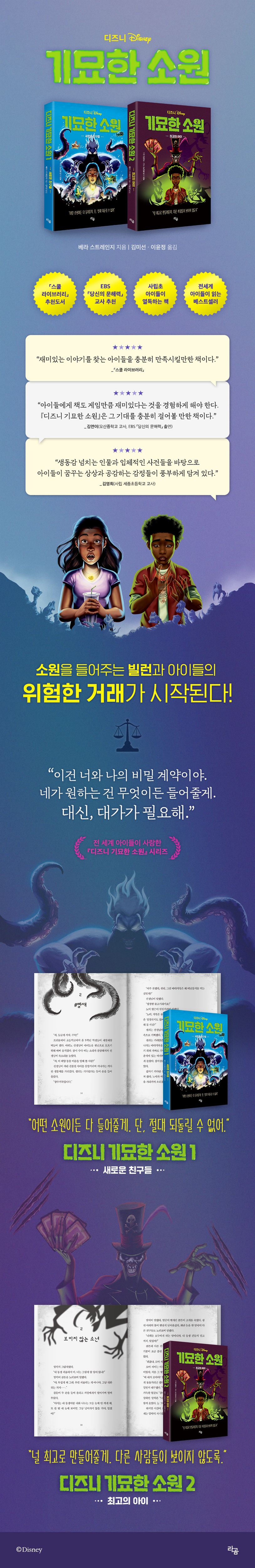 EBS 「당신의 문해력」 출연 교사가 강력 추천하고, 사립초 아이들이 함께 읽는 책! 디즈니 오리지널 노블 『디즈니 기묘한 소원』 시리즈는 미국 「스쿨 라이브러리 저널」이 추천하고 미국, 영국, 호주, 프랑스 등에서 출간되는 등 전 세계 아이들의 사랑을 받는 소설이다.