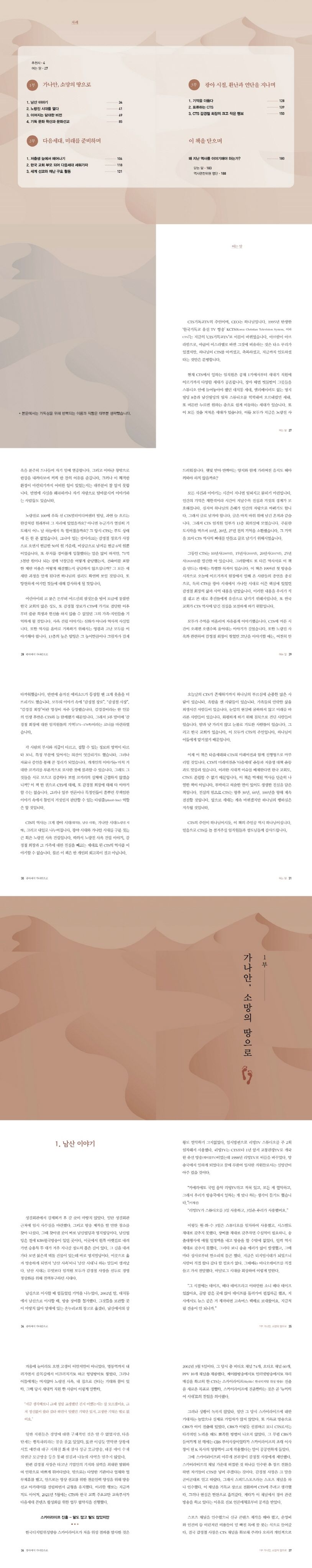 모든 사건과 이야기는 시간이 지나면 잊히고 묻히기 마련이다. 인간의 기억은 제한적이라 시간이 지날수록 진실과 거짓의 경계가 모호해지기도 한다. 심지어 하나님의 은혜가 인간의 자랑으로 바뀌기도 하기에 그 내용을 글로 남겨야 한다. 글은 마치 바위 위에 남긴 흔적과 같기 때문이다. 그래서 CTS 임직원 일부가 모여 10년, 20년, 27년 전의 기억을 소환하고 모아 CTS 역사의 뼈대를 만들고 글로 남기기 위한 작업을 시작했다.