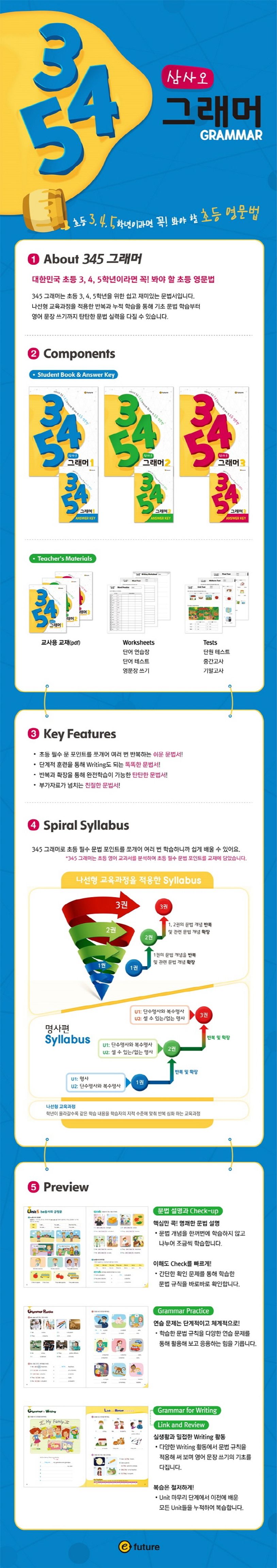 345 그래머는 초등 3, 4, 5학년을 위한 쉽고 재미있는 문법서입니다.