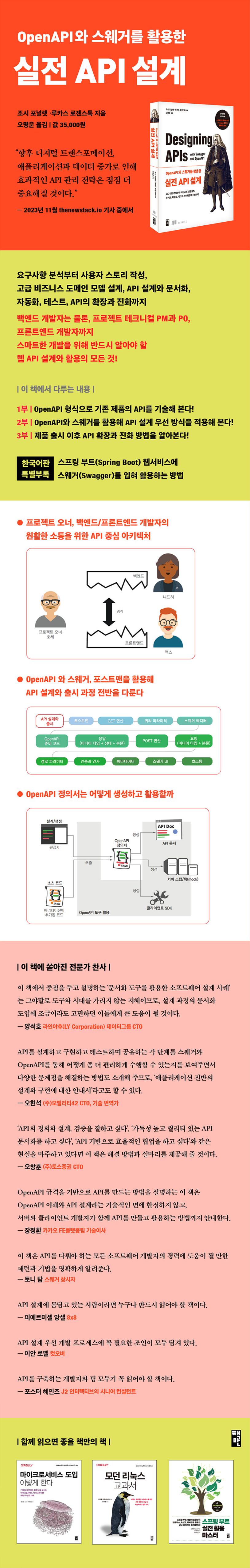 OpenAPI와 스웨거를 활용한 실전 API 설계 (요구사항 분석부터 비즈니스 모델 설계, 문서화, 자동화, 테스트, API 확장과 진화까지)