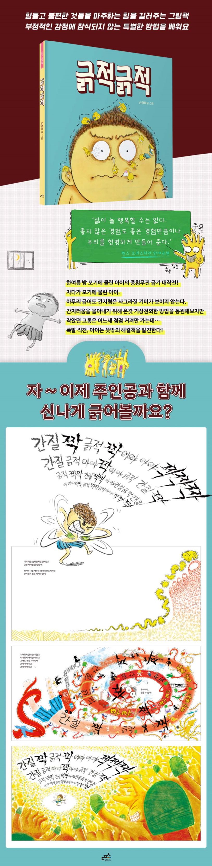 손영목 작가의 첫 그림책 《긁적긁적》이 담푸스에서 나왔습니다. 자다가 모기에 물린 아이가 아무리 긁어도 사그라질 기미가 보이지 않는 간지럼을 없애기 위해 종횡무진하는 이야기예요. 살아 숨 쉬는 캐릭터들과 통통 튀는 만화적 표현 덕분에 읽다가 재밌어서 시간 가는 줄 모르지요. 무엇보다도 힘들고 불편한 것을 마주하는 특별한 방법을 담아내기에 독자들의 내면을 단단하게 만드는 그림책입니다.