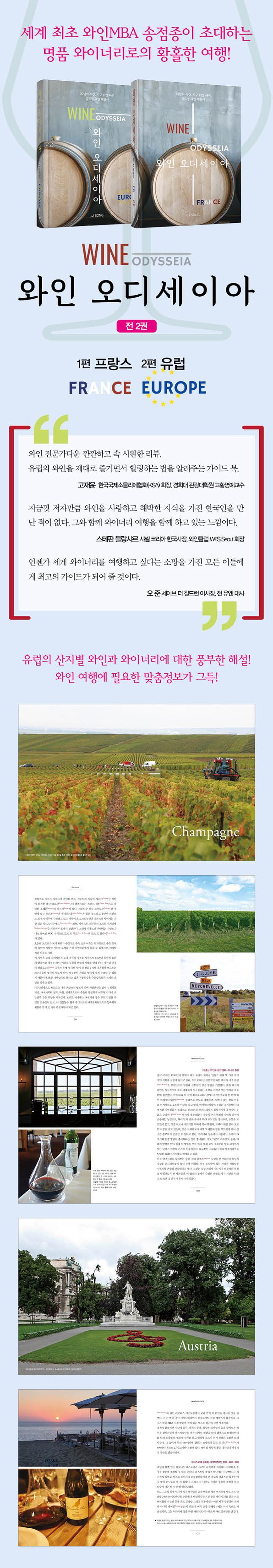 『와인 오디세이아』는 그가 만난 유럽의 무수한 와이너리들을 총망라하면서 그 속에 저자의 다양한 경험과 해박한 인문학적 지식을 그대로 담아내고 있다. 저자의 유럽 와이너리 취재는 한 그루의 포도나무로부터 와인이 만들어지는 과정에서 출발, 와인과 와이너리에 관련된 흥미진진한 역사와 만나며, 와인 산업 전반에 걸친 새로운 트렌드와 미래까지 아우른다. 와인을 알게 되면, 와인문화 또한 몸으로 익히게 되는 법. 저자만의 특별한 시음법과 와인의 맛 표현법, 와인과 음식의 궁합, 비즈니스 와인의 에티켓에 이르기까지 이론은 물론 실제에서도 쉽게 활용할 수 있도록 한, 그야말로 ‘와인의 모든 것’을 담아낸 책이다. 그뿐만 아니라 각 지역별로 와인 지도를 삽입하여 와인 산지와 방문지의 위치를 알기 쉽게 표기했으며, 와이너리 주변의 관광지와 세계적인 레스토랑들을 소개하여, 책을 읽다 보면 어느새 저자의 걸음을 따라서 유럽의 어느 포도밭을 산책하고 있는 듯한 느낌이다. 코로나19 팬데믹 상황으로 사회적 거리두기에 지친 독자들에게 잠시나마 유럽의 포도밭을 거닐며 즐길 수 있는 한 잔의 청량한 와인처럼, 여행의 갈증을 해소시켜 줄 책이다.