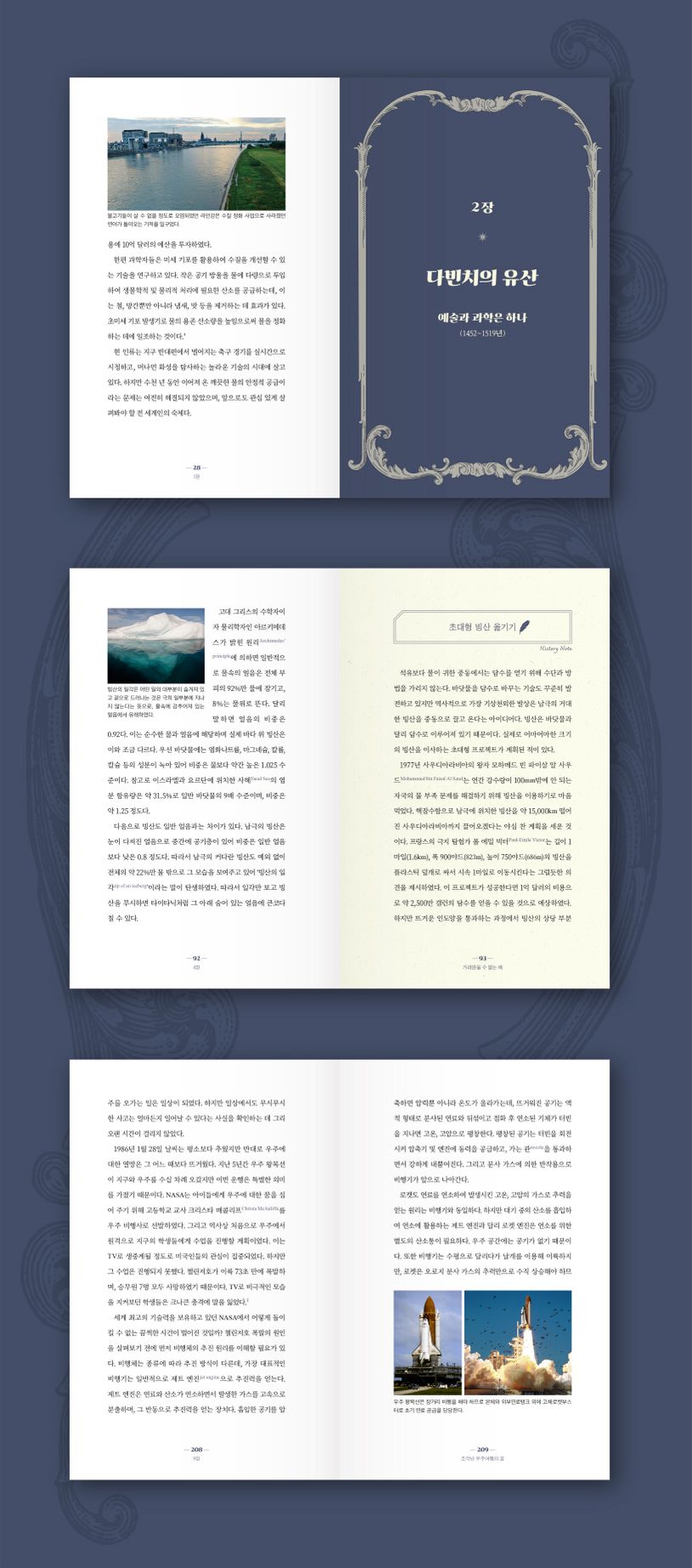 삶이 그렇듯, 세상은 흐른다. 역사의 요동치는 순간으로 들어가 보아도, 모든 것은 흐름 속에 있음을 알게 된다. 그 흐름 속에, 단어 그대로 ‘흐르고 있는’ 유체들은 어떤 역할을 해 왔을까? 고대 로마의 인구는 약 100만 명으로, 1800년대의 대도시 인구 50만 명을 훌쩍 뛰어넘는다. 이러한 대도시가 생기는 데에는 양질의 물을 공급하는 것이 필수였다. 고대의 수도교가 이런 문제를 풀 수 있게 한다. 한편 라이트 형제의 비행은 100년도 더 오랜 시간이 지났지만, 여객기의 운항 속도는 의외로 수십 년간 큰 변화가 없었다. 여기에는 너무 빠른 속도로 이동할 시에 생기는 ‘소닉 붐’이 큰 골칫거리가 된다. 그런가 하면 흐르는 바다에서부터 인간을 지키기 위해 만들어진, 움직이는 방벽도 있다. 네덜란드에 위치한 매스란트케링은 로테르담 항구를 홍수로부터 보호하기 위해 제작된 방벽으로 에펠탑보다 조금 작은 구조물 두 개가 대칭으로 누워 있는 형태다. 무게는 26,500톤으로 움직일 수 있는 구조물 중 세계 최대 규모다. 간척과 같이 바다와의 투쟁으로 국가를 키워 온 네덜란드의 역사를 보여주는 구조물이라고 하지 않을 수 없다.