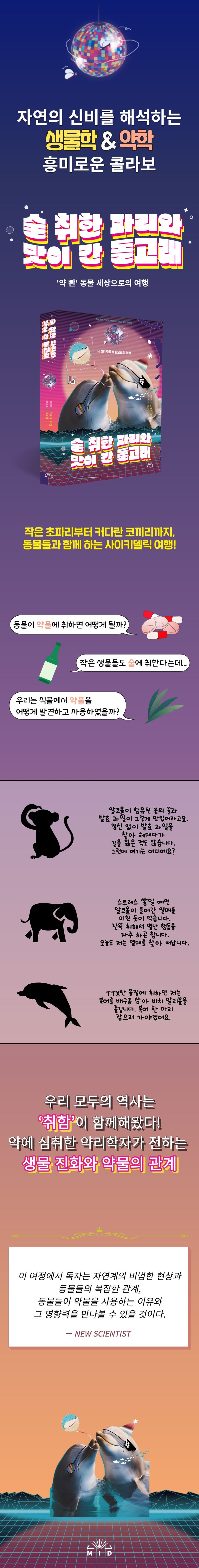 이 책은 동물들 사이에서 흔히 보이는 약물 도취 행위와 그것이 진화와 어떻게 관련이 있는지를 깊이 탐구하는 책으로, 약리학자의 시각에서 작은 초파리와 플라나리아로 시작하여 문어, 거미, 돌고래, 말과 같은 다양한 동물들의 약물(성 성분)에 대한 반응을 세세하게 조명한다.