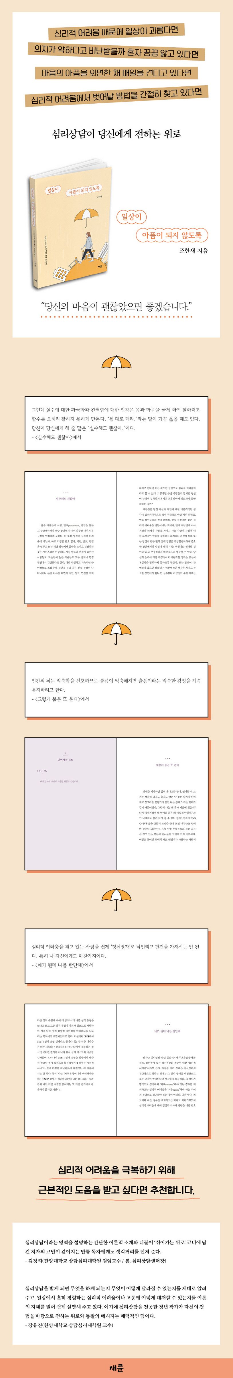 작가 역시 우울증이라는 심리적 어려움을 심리상담의 도움으로 치유한 경험이 있는 만큼, 비슷한 괴로움을 안고 사는 누군가에게 실질적인 도움을 주는 길잡이가 되리라 생각한다.