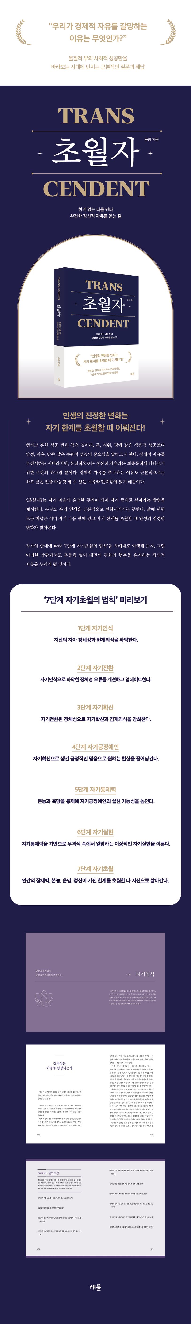 작가의 안내에 따라 ‘7단계 자기초월의 법칙’을 차례대로 이행해 보자. 그럼 어떠한 상황에서도 흔들림 없이 내면의 평화와 행복을 유지하는 정신적 자유를 누리게 될 것이다.