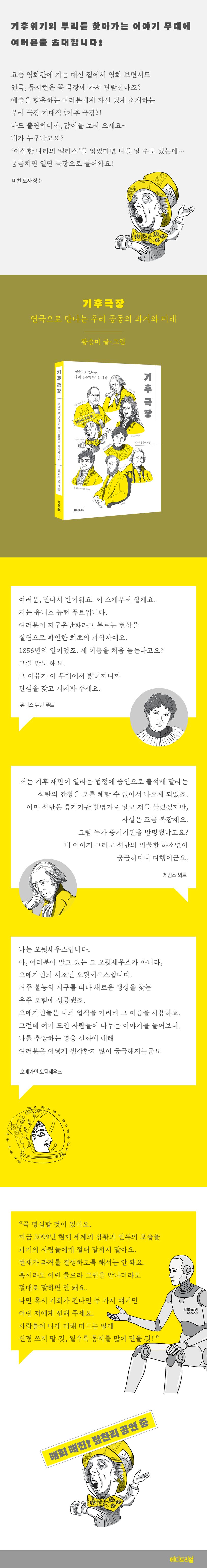 에디토리얼에서 청소년교양서로 펴내는 첫 책 《기후 극장: 연극으로 만나는 우리 공동의 과거와 미래》(이하 《기후 극장 》)는 기후위기라는 시대적 화두를 독특한 형식에 담은 이야기 논픽션이다. 환경, 기후, 생태 분야의 책은 정보를 해설하는 논픽션이 주종을 이루고 있어, 이야기를 즐기는 청소년 독자의 선호에 착안해 색다른 교양서를 시도했다. 오늘날 ‘기후위기’라는 용어가 포괄하는 환경 파괴와 생태 위기의 역사적 배경을 심층 조사하여 중요한 사실들을 간추리고 여기에 어울리는 이야기의 옷을 입혔다. 과거, 현재, 미래를 잇는 시간의 폭 자체가 상상력을 자극한다. 《기후 극장 》을 쓰고 그림까지 그린 작가 황승미는 환경교육을 전공한 전문가로, 기후 문제의 근원을 구성하는 사실들에 관한 정확한 지식을 전달하면서도 문학, 역사, 철학, 공연, 영화 등에서 영감을 얻은 모티프들을 활용해 숫자로 접하게 되는 메마른 사실들에 정서적 온기를 불어넣었다.