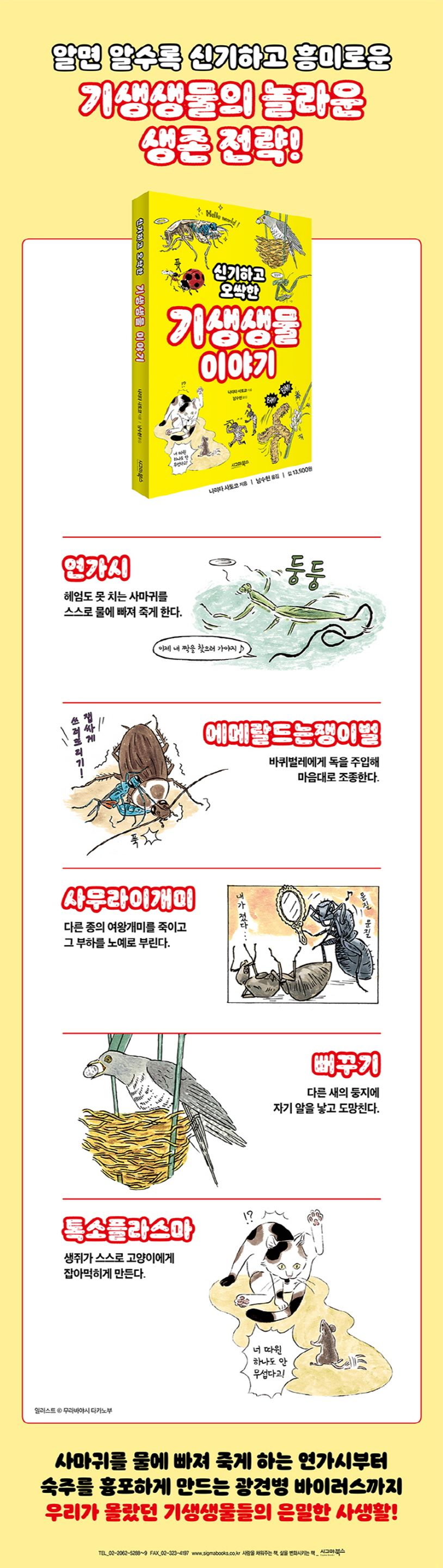 생존과 번식을 목적으로 숙주를 조종하는 놀라운 전략을 펼치는 기생생물들의 이야기를 살펴보자. 기생생물의 일생과 숙주와의 관계, 주변 환경에 미치는 영향을 읽다 보면, 그 신기하고 흥미로운 이야기에 절로 빠져들게 될 것이다.