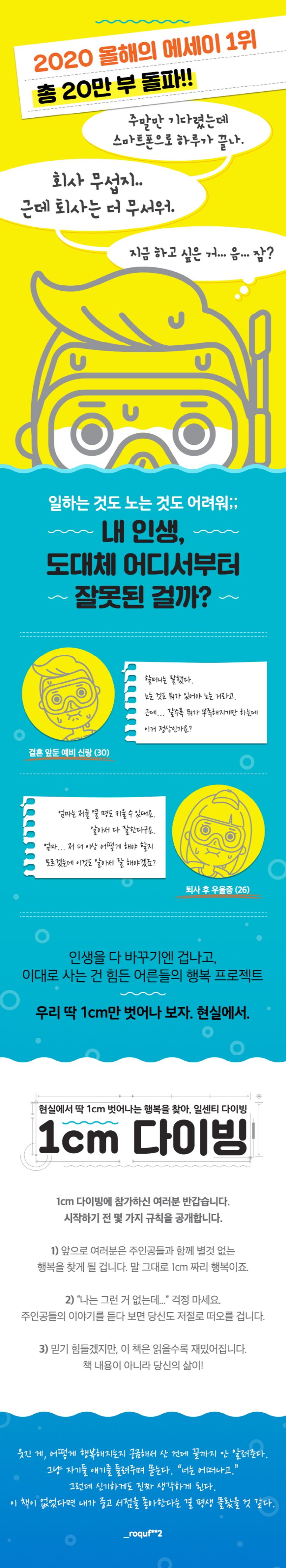현실에서 딱 1cm 벗어나는 행복.?최소한의 노력과 최소한의 위험으로 웃으며 살 수 있는 그런 방법. 프로젝트 1cm 다이빙 함께 하시겠습니까?