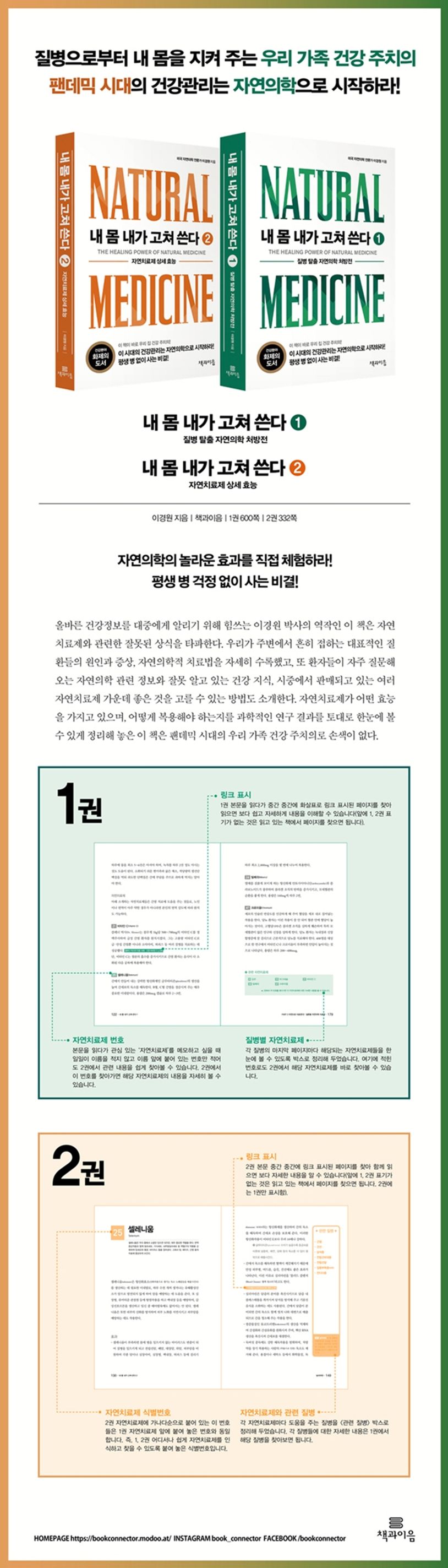 팬데믹 시대 우리 집 건강 솔루션〈내 몸 내가 고쳐 쓴다〉 시리즈 1권 ‘질병 탈출 자연의학 처방전’ 편. 자연의학이란 과연 무엇이며, 각종 암부터 성인병까지 한국인을 괴롭히는 50가지 대표 질환이 왜 생기는지를 이야기한다. 나아가 대다수 현대인이 앓고 있는 질병을 어떻게 예방하고 개선할 수 있는지를 자연의학적 관점에서 쉽게 이해할 수 있도록 간명한 백과사전식 구성으로 상세히 설명해 놓았다. 이 책 한 권으로 평생 큰 병 걱정 없이 건강히 장수하는 데 가장 중요한 올바른 건강 지식과 정보를 얻을 수 있다.