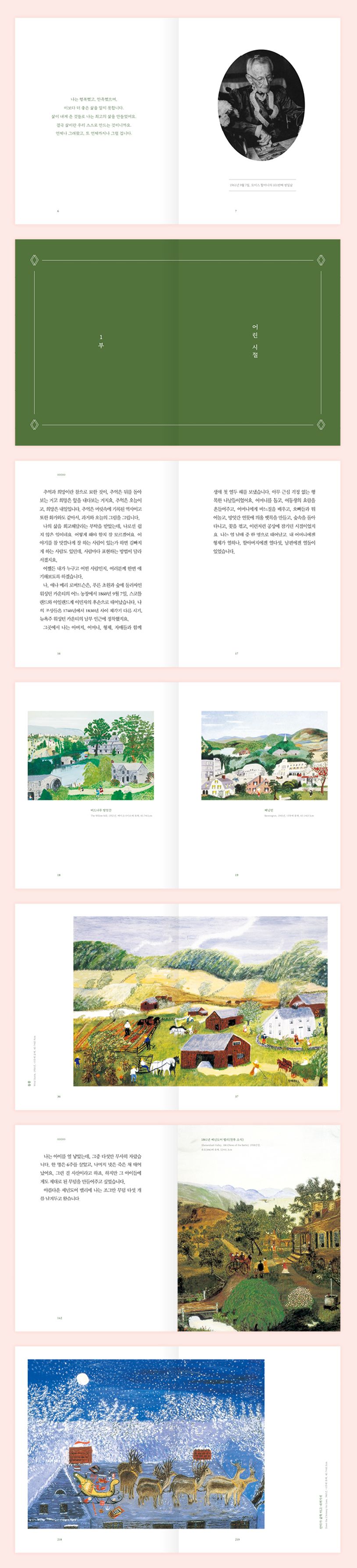 ‘인생에서 너무 늦은 때란 없다’는 것을 우리에게 삶으로 보여준 모지스 할머니의 자전 에세이 《인생에서 너무 늦은 때란 없습니다》이 큰글자책으로 출간되었다. 일반판에 수록되었던 그림 중 48점과 글 일부를 선별해 담았고, 책에 실리지 않았던 모지스 할머니의 그림 70점을 새롭게 수록해 재편집했다. 나이가 많거나 시력이 안 좋은 독자들이 편안하게 읽을 수 있도록 새로운 판형에 글자 크기를 키웠다. 또한 그림을 보다 선명하게 즐길 수 있도록 본문 용지는 교체하고, 양장 제작했다. 이를 통해 보다 더 많은 분에게 모지스 할머니의 따뜻하고 뭉클한 삶이 가 닿기를 바란다.