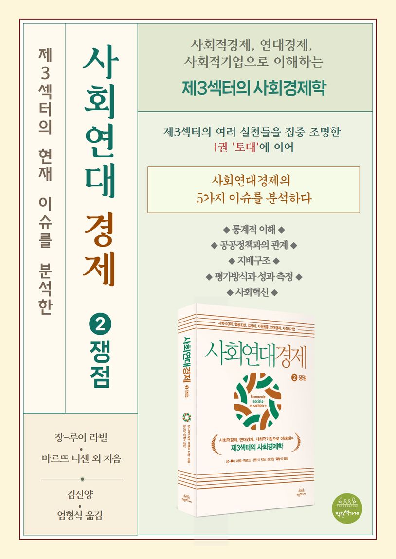 이 책은 사회연대경제에 대한 학술연구 발전에서 주요한 역할을 했던 불어권 유수의 연구자들이 참여한 공동작업의 결과물로 1권(토대)에 이은 두 번째 책이다. ‘쟁점’이라고 명명한 2권에서는 제3섹터 전반에 걸쳐 제기되는 이슈들, 즉 통계적 이해, 관련 공공정책, 지배구조의 형태, 경제적 및 사회적 성과평가를 다루고 있다. 다양한 접근들을 통해 좀 더 풍부하게 이해할 수 있는 지점과 여전히 불분명한 지점이 무엇인지를 파악하는 데 도움이 될 것이다.