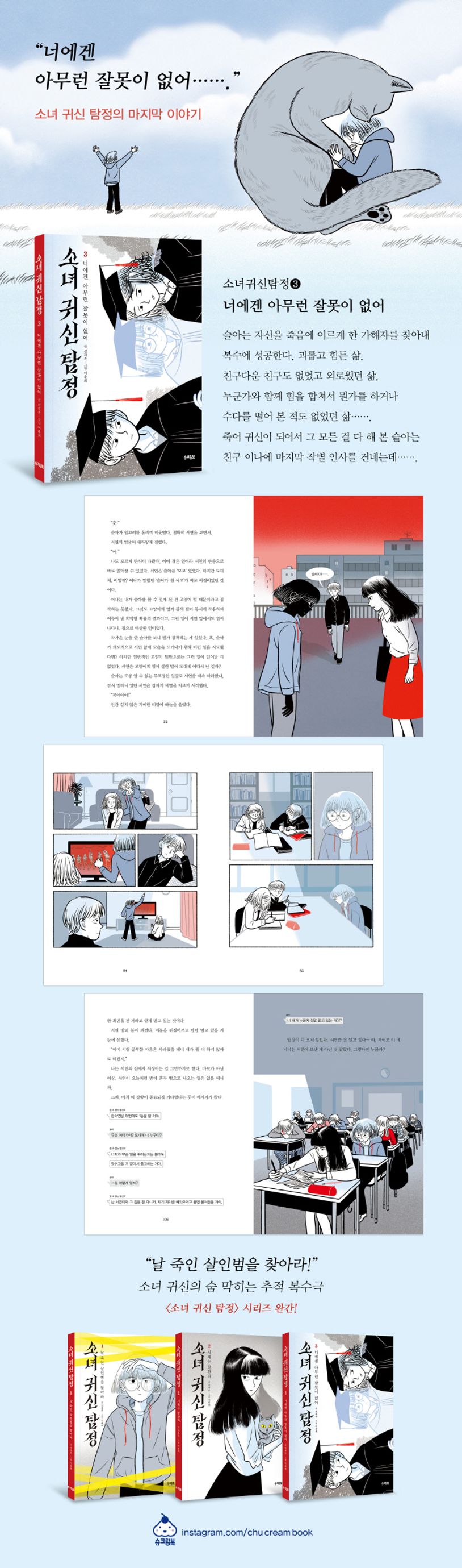복수 끝에도 다시는 10대의 평범한 일상으로 돌아갈 수 없는 소녀 귀신의 애절한 이야기는 3권을 끝으로 막을 내리지만, 책을 덮고 난 뒤 남는 여운은 독자들에게 또 다른 숙제가 될 것이다.