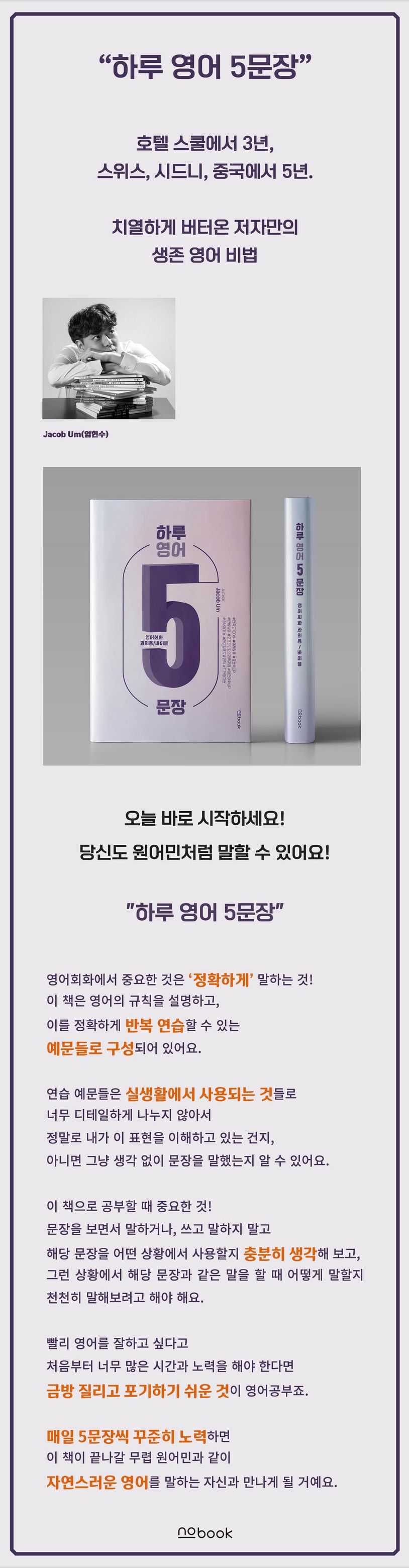 이 책은 문장을 외우는 것이 아닌, 하고 싶은 말을 자연스럽게 연결하여 말할 수 있도록 도와주는 것에 집중했다. 기본적인 개념과 실생활에서 사용하는 단어들을 숙지하면서, 이와 관련된 실생활 예제로 연습할 수 있도록 내용을 구성했다.