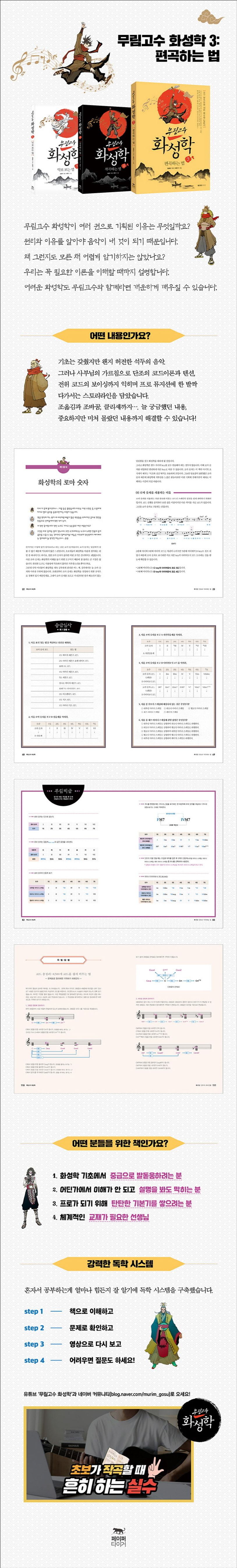 본격적으로 진로를 고민하는 분, 취미로 음악을 하려는 분도 막힘없이 수련할 수 있도록 4단계의 독학 시스템을 구축하였다. 책에 직접 풀고 그리면서 배우고, 영상으로 한 번 더 익히며 내용을 온전히 소화해나갈 수 있다. 유튜브 영상강의와 무림고수 커뮤니티의 질의응답을 함께 제공한다.