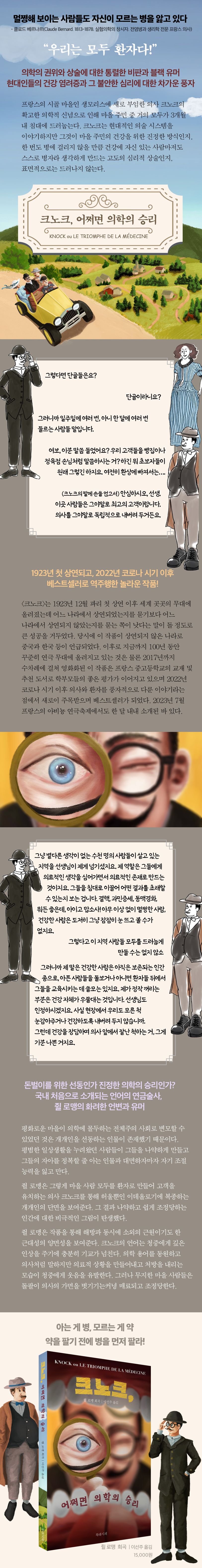 단순한 줄거리, 그러나 뚜렷한 주제 의식을 드러내는 시사적 양면성. 몰리에르의 계보를 잇는, 의학에 대한 우스꽝스러운 풍자. 100년이 지난 작품이지만 이데올로기와 대중 선동의 영향력을 보다 심오한 방식으로 고발한 이 고전 희곡의 풍자에 오늘날 많은 독자가 틀림없이 크게 환호하며 공감할 것이다.