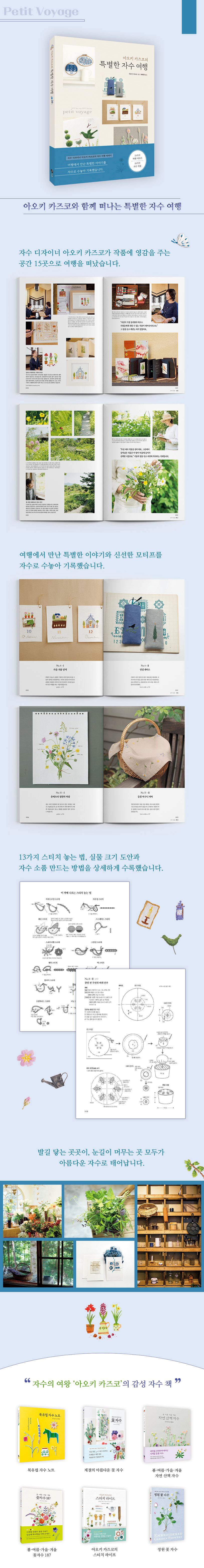 새로운 곳으로 여행을 떠나면 하늘의 빛깔과 공기 내음, 그곳 사람들과 나눈 대화까지 가슴 설레는 자극이 가득하다. 지금까지 몰랐던 세상을 체험하면서 직접 보고 듣고 느낀 경험들은 새로운 작품을 창조하는 힌트가 된다. 《아오키 카즈코의 특별한 자수 여행》은 자수 디자이너 아오키 카즈코가 작품에 영감을 주는 공간 15곳을 여행하고 그 특별한 이야기를 수놓아 기록한 책이다. 꽃집과 장미 정원, 토피어리와 허브 농원 등 자수의 주요 모티프가 되는 장소를 중심으로, 일러스트레이터의 작업실과 자수 실 염색 공방, 조향 아틀리에와 파티세리까지 전문가들이 손수 가꾼 공간에서 나눈 이야기와 아이디어가 신선한 자수 작품과 함께 펼쳐진다.