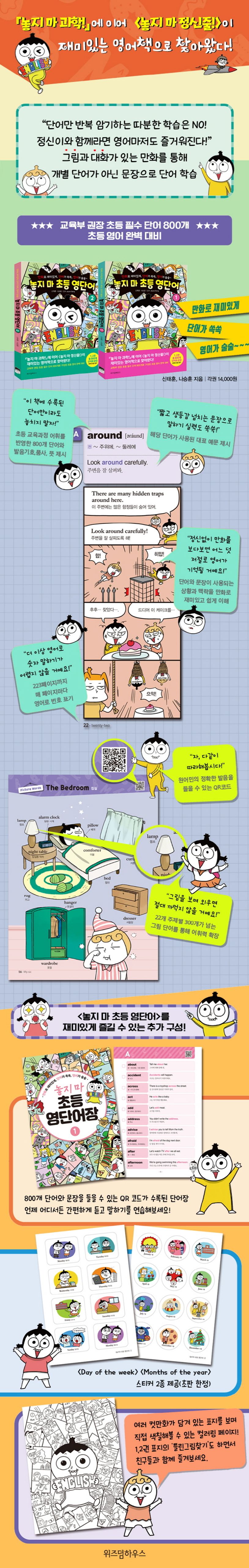 정신이네 가족의 엉뚱 발랄한 일상을 담은 만화를 보면서 아이들은 스스로 즐거운 영어 경험을 시작하게 된다. 외워도 금방 잊어버리고 또다시 반복하는 따분한 단어 암기는 이제 그만! 만화를 보며 웃다 보면 단어가 머릿속에 쏙쏙 기억되고, 상황에 딱 맞는 영어 문장이 저절로 기억나는 『놓지 마 초등 영단어』로 영어 공부도 재미있게 시작해 보자!