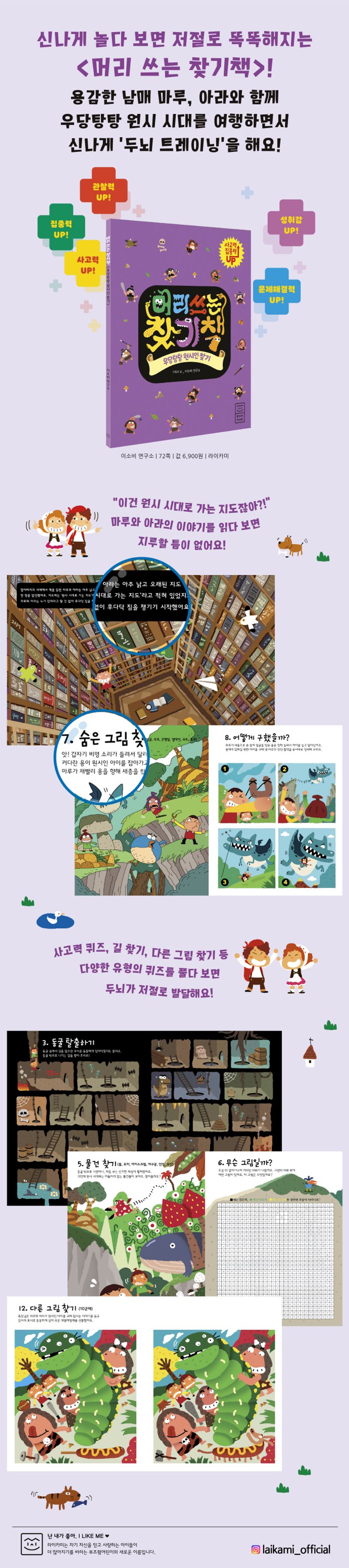 이번에는 〈우당탕탕 원시인 찾기〉! 마루와 아라는 우연히 원시 시대 지도를 발견하고 곧바로 짐을 챙겨 떠났어요. 생소한 것들이 가득한 원시 시대를 신나게 여행한 뒤 안전하게 집으로 돌아갈 수 있을까요? 지금부터 《머리 쓰는 찾기책: 우당탕탕 원시인 찾기》를 만나 보세요!