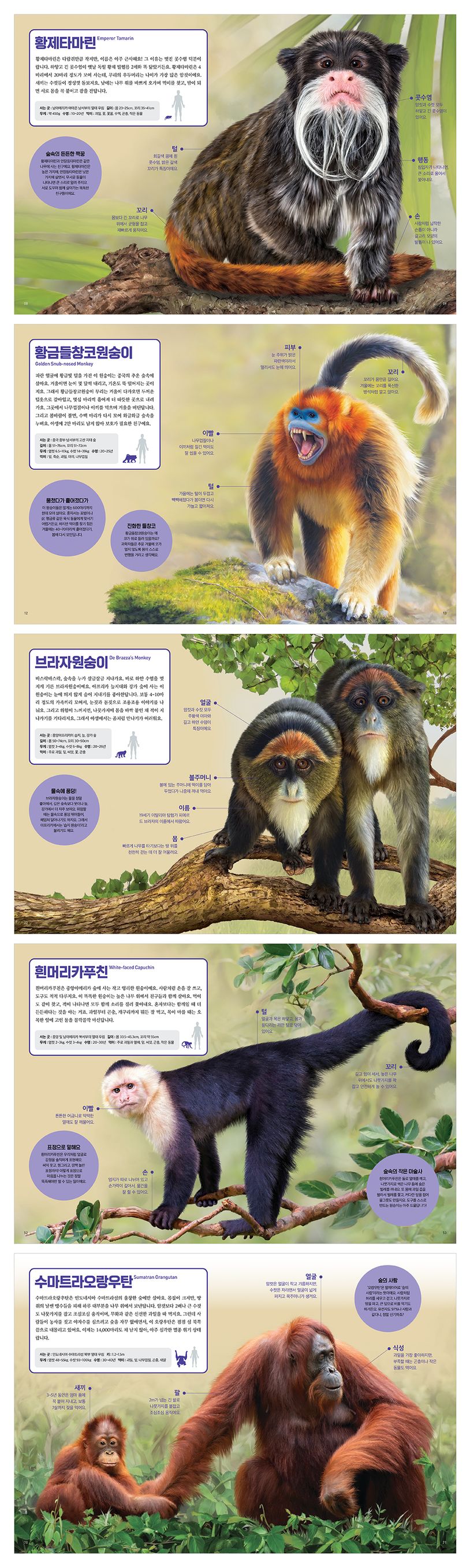 이번에 만날 이야기는 우리와 신기하게 닮은 '영장류' 이야기예요. 털이 나고, 두 손과 두 발을 쓰며, 똑똑한 머리로 생각하는 원숭이, 고릴라, 침팬지가 바로 영장류랍니다. 등에 새끼를 업고 다니고, 신나게 눈싸움을 하고, 강물에서 물고기를 낚거나 나뭇잎 우산으로 비를 막는 행동이 꼭 사람 같지 않나요? 그 이유는 우리 사람도 ‘영장류’거든요!