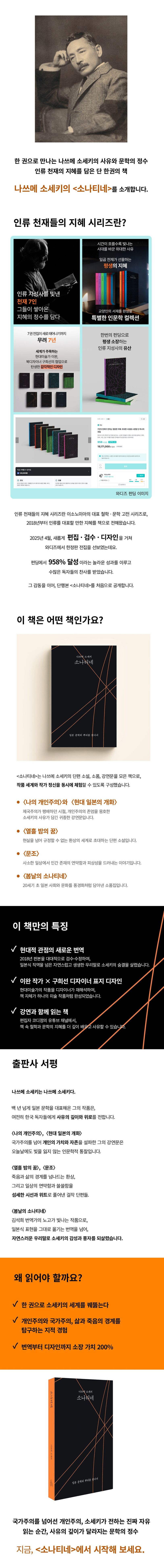 저자:나쓰메소세키 나쓰메긴노스케는원치않은아이로태어났다.갓난아기적에시오바라가문으로입양되었다가양부모의이혼으로다시나쓰메집안으로돌아왔다.부모한테서인정받지못한불안한환경속에서도면학에전념하여동경제국대학영문학과를졸업했다.친구에게서‘돌로이를닦는다’는뜻의소세키라는호를물려받았다.그는거의평생어디한곳에정착하지못했다.이곳저곳에서영어교사생활을전전하다가일본정부의명령으로영국국비유학을떠났지만제대로적응하지못한채신경쇠약에시달리면서자기의본령을찾느라유학생활도실패했다.소세키는뒤늦게하늘이내린자기재능과자신이가야할인생을깨달았다.도쿄로돌아온후서른일곱살이돼서야기분전환삼아소설한번써보지않겠냐는친구의권유로단편을하나쓴것이소세키의인생을바꾸었다.그것이〈나는고양이로소이다〉였다.그는내면에가득했던세계를한꺼번에폭발시켰다.〈도련님〉,〈풀배게〉,〈우미인초〉,〈산시로〉,〈그후〉,〈문〉,〈마음〉,〈열흘밤의꿈〉,〈봄날의소나티네〉,〈현대일본의개화〉,〈나의개인주의〉등소설,하이쿠,수필,평론,한시,강연,여러장르에걸쳐다양한작품을남겼다.일본인이사랑하는국민작가중한사람이되었지만정작본인은국가와권력을멀리하였다.문부성이박사학위를선사하자그것을거부하였다. “박사가아니면학자가아닌것같이세상사람들이생각한다면학문은소수박사들의전유물이되어학자적인귀족이학문권력을장악하는폐해가속출하고맙니다.” 역자:김석희 오사카대학에서김사량문학연구로박사학위를받았으며현재경희대학교에서강의하고있다.권력과인간내면에존재하는배타성에깊은관심을두고있다.〈식물기〉,〈인간은행〉,〈내셔널아이덴티티와젠더:나쓰메소세키로읽는근대〉,〈말과황하와장성의중국사〉등을번역했고,최근에는아티스트로활동한다.