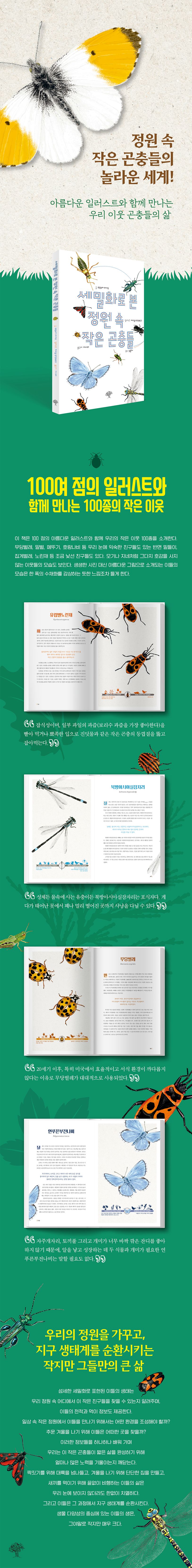 길가의 나무와 꽃, 수풀을 자세히 들여다보면 거기에는 단지 나무와 꽃, 수풀만 존재하지는 않는다. 우리 눈에 잘 보이지 않는 생물들이 꽃에, 줄기에, 나뭇가지에 매달려 삶을 살아가고 있다. 이들은 때로 우렁찬 울음소리로, 때로는 아름다운 날개와 빛깔로 자신의 존재를 과시하며 우리의 눈길을 사로잡는다. 그러나 우리는 대개 그 존재를 잊고 살며, 그들이 우리 삶에서 어떠한 역할을 하는지 관심조차 두지 않는다. 그러나 이러한 작은 생물들은 지구 생물량의 대다수를 차지하는 거대한 세계를 일구는 구성원이다. 우리가 잘 아는 거대 포유류는 그 존재감에도 불구하고 생태계에서 차지하는 위치가 생각보다 미미하다. 생물의 절대 다수는 1그램이 채 되지 않고 1년을 살지 못하지만 탄소, 질소, 인의 거대한 순환 주기를 만들며 우리의 안락한 삶과 생존을 지탱해 준다. 그렇다면 우리 눈앞을 스쳐 지나가는, 그러나 우리 삶에 필수적인 역할을 수행하는 이 작은 친구들에게 조금은 관심을 가져 봐도 좋지 않을까? 우리의 작은 친구들을 아름다운 일러스트와 함께 소개하는 《세밀화로 본 정원 속 작은 곤충들》과 함께, 새로운 친구와의 즐거운 만남을 시작해 보자. 어렵지 않다. 그저 책장을 펼치기만 하면 된다.