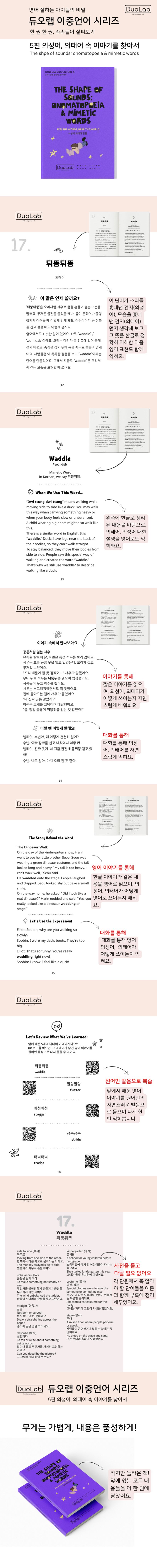 두 언어의 의성어·의태어를 함께 비교하며 한글 감각과 영어 어휘력을 동시에 키워줘요.
