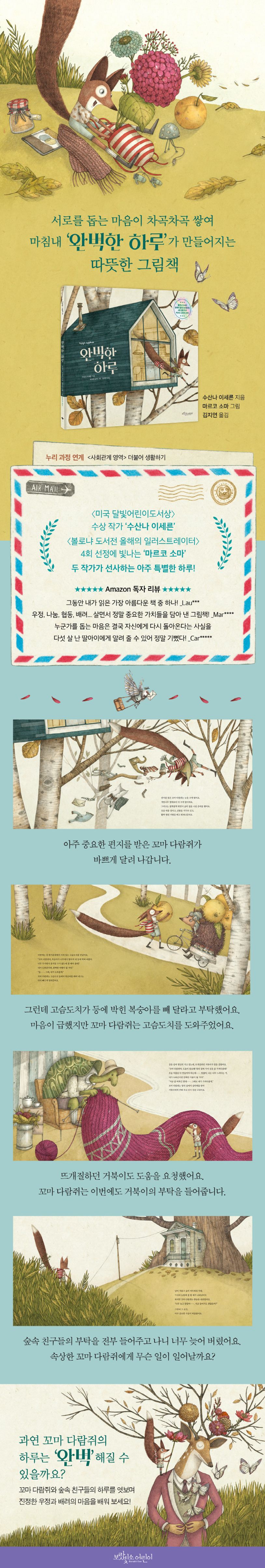미국 달빛어린이도서상 등을 수차례 수상한 ‘수산나 이세른’과, 볼로냐 도서전 올해의 일러스트레이터 4회 선정 작가이자 이탈리아 안데르센상과 나미 콩쿠르를 수상한 ‘마르코 소마’가 만나 따뜻하고 아름다운 그림책을 펴냈다. 보랏빛소어린이 출판사에서 출간된 《완벽한 하루》는 어려움에 처한 친구를 외면하지 않고 기꺼이 도움의 손길을 내미는 우정과 배려의 태도를 담은 책이다. 바쁜 꼬마 다람쥐에게 자꾸만 도움을 요청하는 숲속 친구들, 바쁜 와중에도 부탁을 외면하지 못하는 꼬마 다람쥐의 모습은 독자들로 하여금 많은 것을 떠올리게 한다. 선행을 베푸는 일은 때때로 귀찮고 손해를 보는 것처럼 느껴지지만, 그 작은 친절이 언젠가 반드시 나에게 돌아온다는 값진 메시지가 섬세하고 감성적인 그림으로 오래오래 마음에 새겨질 것이다.