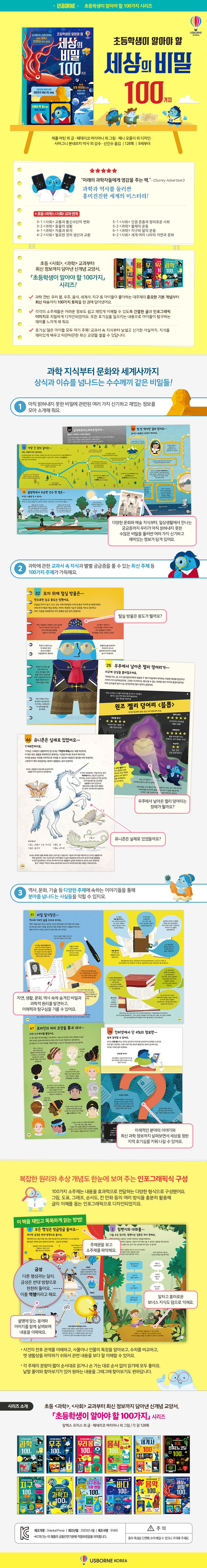 끝없는 호기심을 가진 아이들에게 세상의 비밀을 알려 주는 어린이 교양서 「초등학생이 알아야 할 100가지」 시리즈의 신간 ‘세상의 비밀’ 편이 출간되었어요. 이 시리즈는 초등 〈과학〉, 〈사회〉 교과에서 다루는 개념은 물론, 꼭 알아야 할 지식을 더욱 폭넓게 탐구할 수 있도록 중요한 기본 개념부터 최신 이슈까지 100가지 토픽을 뽑아 한 권에 담아냈어요. 각각의 토픽은 어려운 정보도 쉽고 재밌게 이해할 수 있도록 간결한 글과 인포그래픽을 활용한 이미지로 치밀하게 디자인되었어요. 교과서 속 내용부터 낯설고 신기한 사실까지, 지식을 재미있게 배우고 따끈따끈한 최신 교양을 쌓을 수 있답니다.