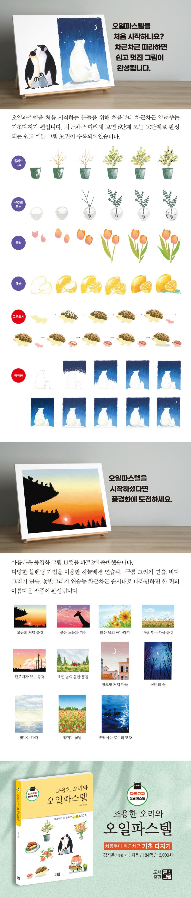 ‘오늘은 오일파스텔’에 이어 두 번째 오일파스텔 책으로 여러분을 다시 만나게 되어 정말 기뻐요. 그동안 저는 언제나처럼 매일 그림을 그리며 독자님들을 다시 만날 날을 손꼽아 기다려 왔답니다.