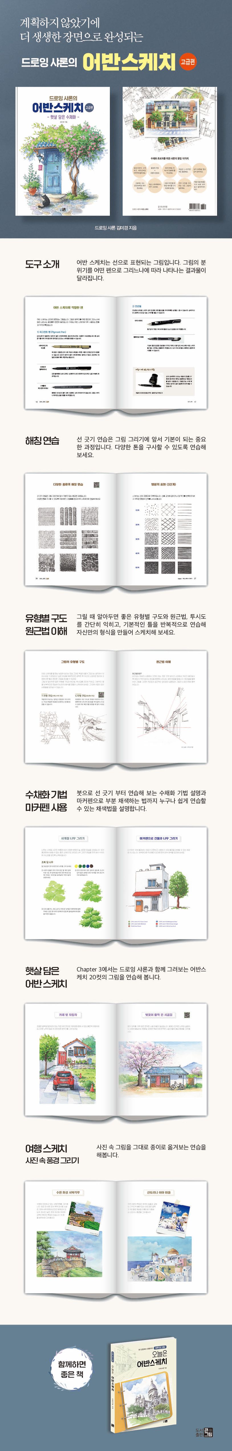 2년 전 가을에 출간한 「오늘은 어반 스케치」를 통해 많은 분들과 펜 드로잉의 매력을 나눌 수 있어 진심으로 기쁘고 감사했습니다. 그림을 처음 시작한 분부터 세월이 흘러 다시 펜 잡기에 도전한 분들까지 저마다의 속도로 자신의 시선을 찾아가는 과정을 지켜보는 일들은 제게도 큰 감동이었습니다. 하지만 동시에 이런 이야기도 많이 들었습니다.