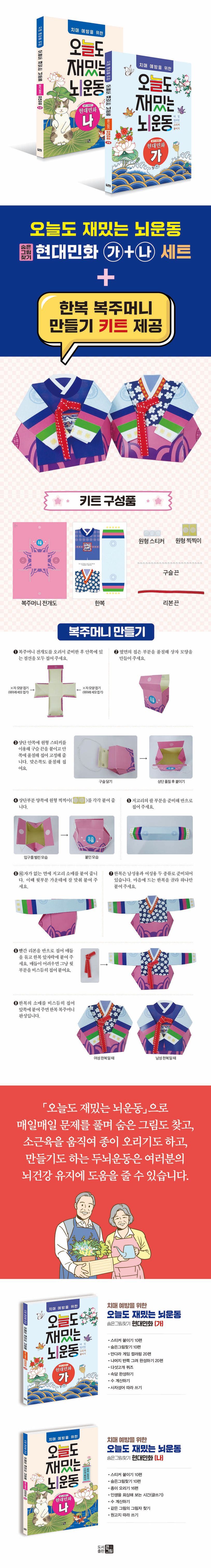 치매예방을 위한 오늘도 재밌는 뇌운동: 현대민화(가)+(나)+한복 복주머니만들기 키트 (전 2권)