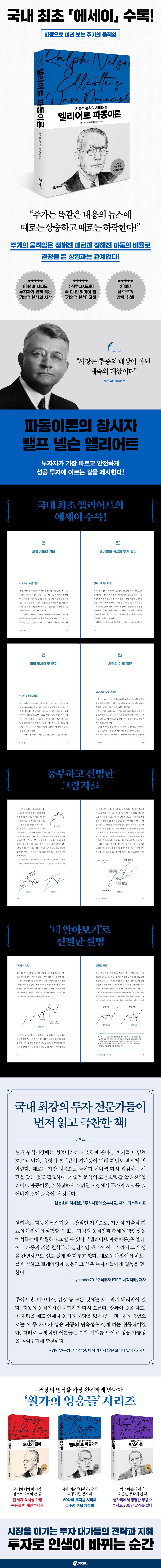 특히 『엘리어트 파동이론』에는 그가 투자 자문가로 직업을 변경한 이후 소수의 고객에게만 제공했던 『에세이』를 ‘국내 최초’로 수록했다. 엘리어트는 1938년 파동이론을 발표한 것에 만족하지 않았다. 자연의 패턴을 보며 피보나치 비율의 역할을 논의했던 여러 학자의 견해를 통해 주식시장의 추세뿐만 아니라 다른 분야의 여러 데이터에도 파동이론이 적용된다는 것을 추가로 발견했다. 엘리어트는 탐구의 범위를 제한하지 않고 영역을 넘나들며 결국 인간의 감정과 활동 또한 자연법칙의 영향을 받는다는 개념을 완성했다. 『에세이』를 통해서는 초기 파동이론이 날로 확장되며 완성도가 더해지는 과정을 상세하게 확인할 수 있다. 파동이론에 한 걸음 더 가까워질 기회일 뿐만 아니라 새로운 관점으로 차트를 해석하고 트레이딩에 응용하여 자신만의 투자 원칙을 정립하는 데 많은 도움이 될 것이다.
