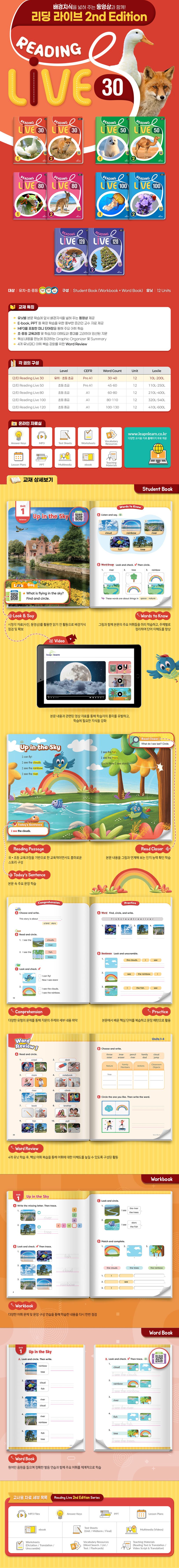 『2nd Edition Reading Live』 시리즈는 초급부터 중급 단계의 영어 학습자들을 위한 독해 교재입니다. 초·중등 교육과정과 학습자의 이해도 및 흥미를 고려하여 엄선한 지문들로 구성하였고, 본문과 연계된 영상들을 통해 학습에 필요한 배경지식을 확장시켜 줄 수 있도록 하였습니다.