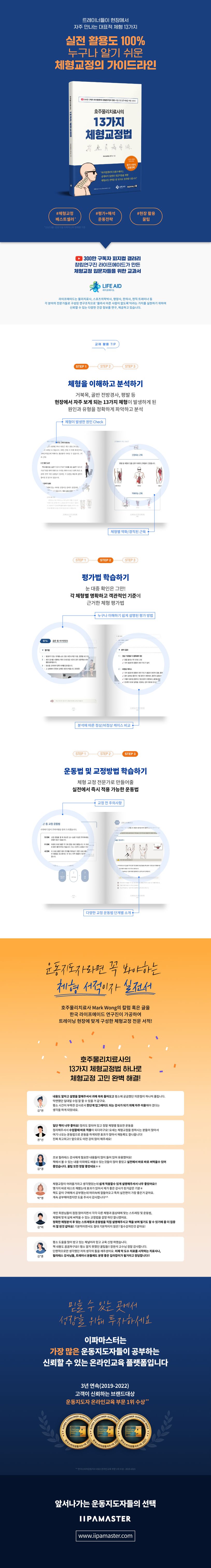 호주물리치료사의 13가지 체형교정법은 300만 구독자를 보유한 헬스 건강정보 인기 유튜브 채널 피지컬갤러리의 재활 컨텐츠 연구조직 라이프에이드가 운동지도자들을 위해 집필한 체형교정 교과서입니다.