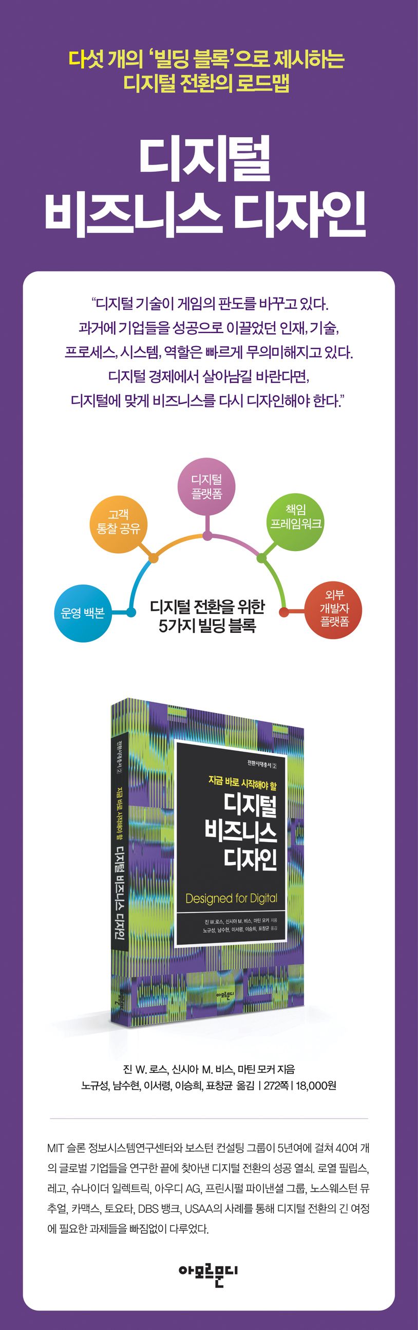 “디지털 기술이 게임의 판도를 바꾸고 있다. 과거에 기업들을 성공으로 이끌었던 인재, 기술, 프로세스, 시스템, 역할은 빠르게 무의미해지고 있다. 디지털 경제에서 살아남길 바란다면, 디지털에 맞게 비즈니스를 다시 디자인해야 한다.”