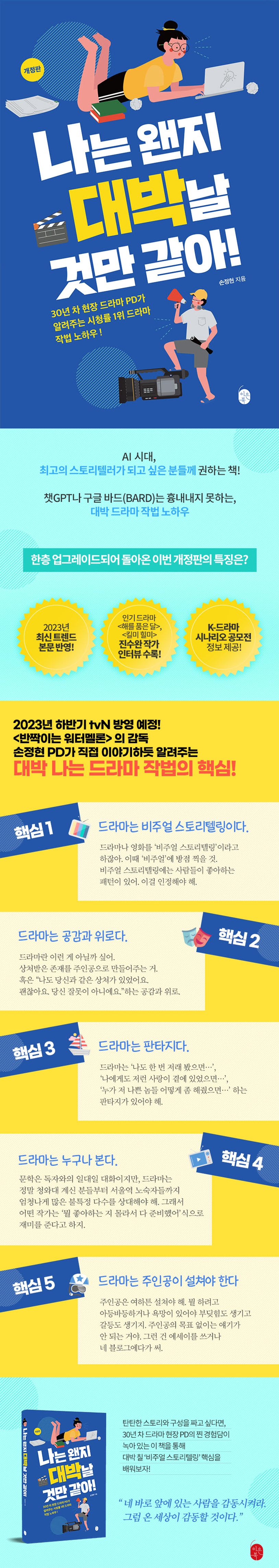더불어 요새 가장 ‘핫’ 한 웹툰, 웹소설 등 사람들의 마음을 사로잡고 쥐락펴락할 수 있는 스토리텔링 핵심 노하우가 궁금한 모든 창작자들에게도 명쾌한 해답을 전해줄 것이다.