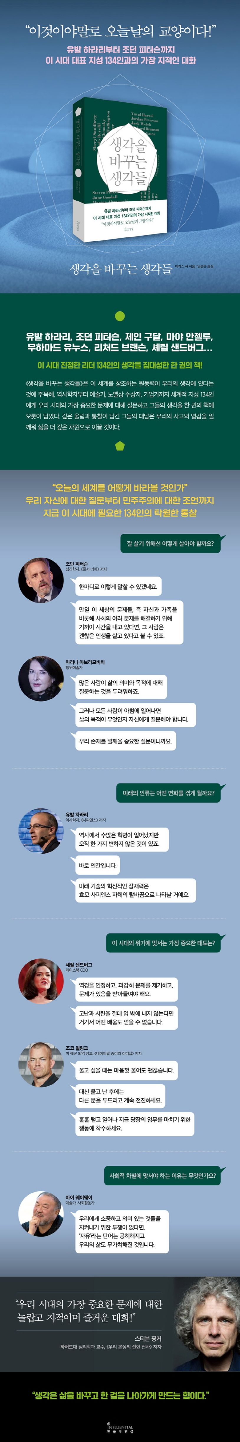 생각을 바꾸는 생각들 (유발 하라리부터 조던 피터슨까지 이 시대 지성 134인과의 지적인 대화)