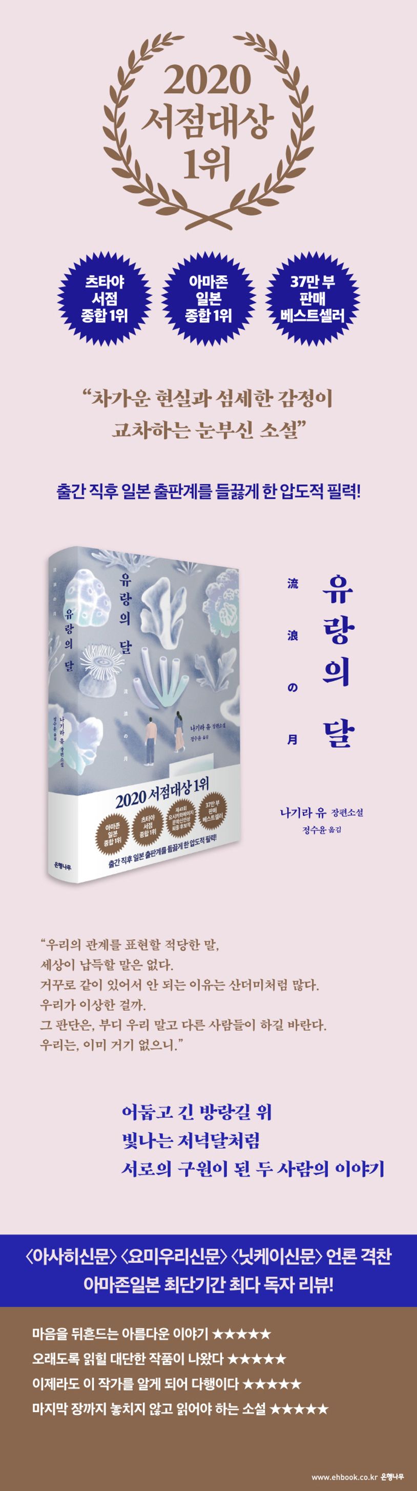 서점대상은 일본의 전국 주요 서점 직원들이 그해 ‘가장 팔고 싶은 책’을 투표해 선정하는 문학상이다. 다양한 연령대의 직원들이 참여하는 만큼, 대중성은 물론 문학성까지 고루 갖춘 작품이 선정된다. 2020년 서점대상을 수상한 《유랑의 달》은 출간 직후 “대단한 소설이 나왔다”는 평과 함께 각종 서점 1위를 차지하고, 제41회 요시카와에이지 문학신인상 최종 후보에 올랐다. 섬세한 인물 구성과 감정 묘사로 일본 독자들의 전폭적인 지지를 받은 소설은 출간 1년 만에 37만 부 판매를 기록하는 기염을 토했다.