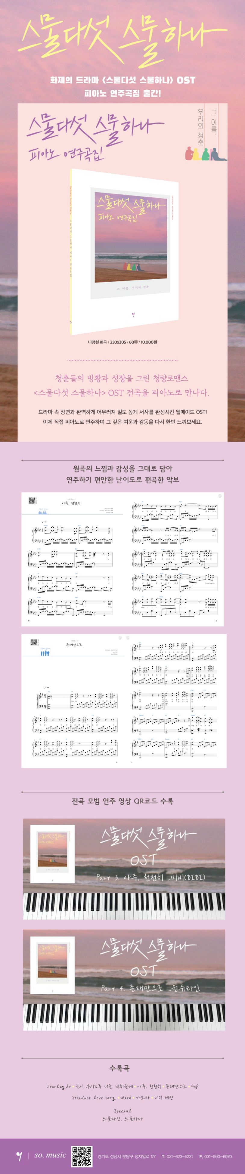 회차를 거듭할수록 짙어지는 설렘과 그때 그 시절 추억을 불러일으키며 연일 화제를 몰고 온 드라마 〈스물다섯 스물하나〉의 OST를 피아노 스코어로 엮어낸 피아노 연주곡집입니다. 원곡의 느낌과 감성을 최대한 살려 편곡하였고, 전곡 모범 연주 영상 QR코드를 수록하여 연주에 도움을 더했습니다. 회차마다 드라마 속 장면과 완벽하게 어우러져 밀도 높게 서사를 완성시킨 웰메이드 OST를 직접 연주하며 그 깊은 여운과 감동을 다시 한번 느껴보세요!