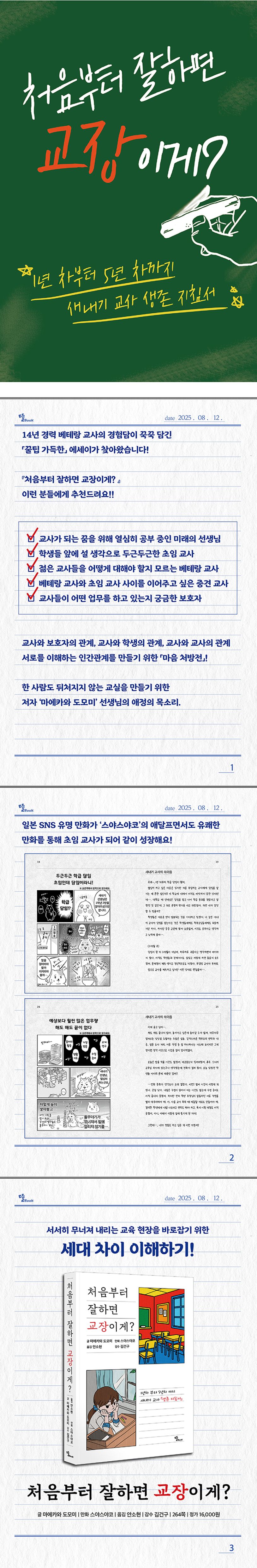 자신의 경험담을 통해 후배들이 정답을 찾지 못할 때 실마리를 잡아주는 사랑이 담긴 목소리가 이 책에는 담겨있습니다. 가차 없을 정도로 새내기 교사가 겪는 괴로움이 가득 담겨 있지만, 그를 이겨내고 교사로서 자리를 잡아 나가는 새내기 교사의 모습을 보며 이 책을 읽는 선생님들과 선생님들의 상황을 이해하고 싶은 분들 역시 우리 아이들을 위해 노력하는 선생님들을 응원하게 될 것입니다.