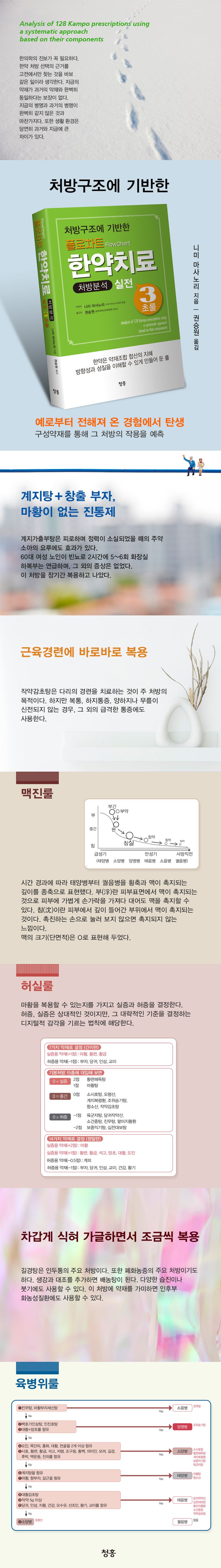 “한의치료의 꽃은 한약치료다” 어느덧 17년차 한의사가 된 역자 자신의 오랜 그리고 깊은 신념이다. 하지만, 임상현장을 보면 이 꽃이 시들기 시작한지 오래인 것 같다. 이 꽃이 만개해 있다면 일상적인 환자들의 호소부터 정말 낫기 어려운 난치질환의 증상에까지 한약치료가 두루두루 활용되어야만 할텐데, 현실은 정말 극히 일부 영역에서만 한약치료가 활용되고 있기 때문이다. 그 배경에는 제도적 측면의 한계, 그로 인해 파생된 수요의 감소가 분명 존재한다. 그리고 뭔가 한약처방은 쉽지 않다는 한의사 자신이 세워둔 마음의 장벽, 이것이 현재 상황의 결정타가 되고 있다고 본다. 이는 한약처방이 필요한 환자에게도 적극적인 권유를 하기 어렵게 만들며, 그 결과 한약처방을 많이 해보지 못한 한의사는 점차 한약치료를 활용하지 않는 상황을 만들고 있는 것이다. 그래서 니미 마사노리 선생이 한방처방을 분석하는 방법, 바로 그 눈을 한 번 들여다보게 되면, 한국의 각 임상 한의사 자신의 플로차트를 구상해 나가는데 더 큰 도움이 될 것이라 믿는다. 이 책이 많은 임상한의사들에게 “물고기 잡는 법을 지도하는 역할”을 하길 바라며 내어놓는다.